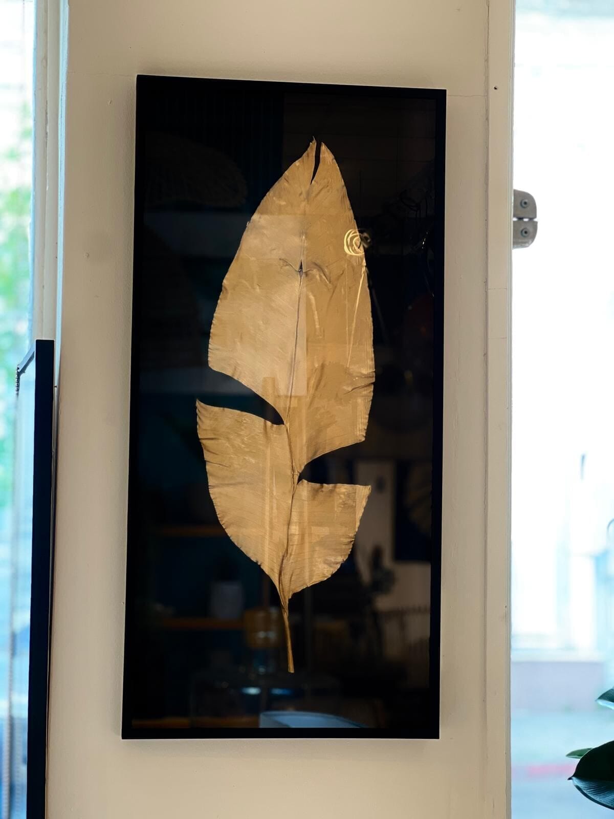 Cuadro negro hoja dorada