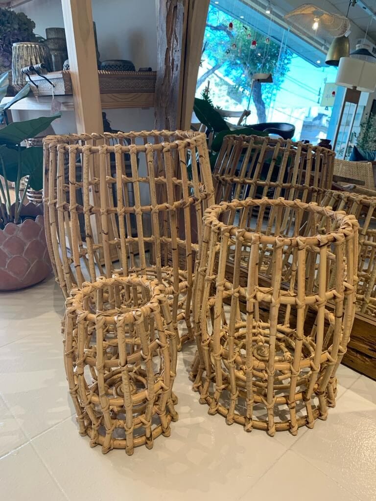 Material: Caña y mimbre. Medidas: Chico: 25 cm alto. Mediano: 35 cm alto. Grande: 45 cm alto