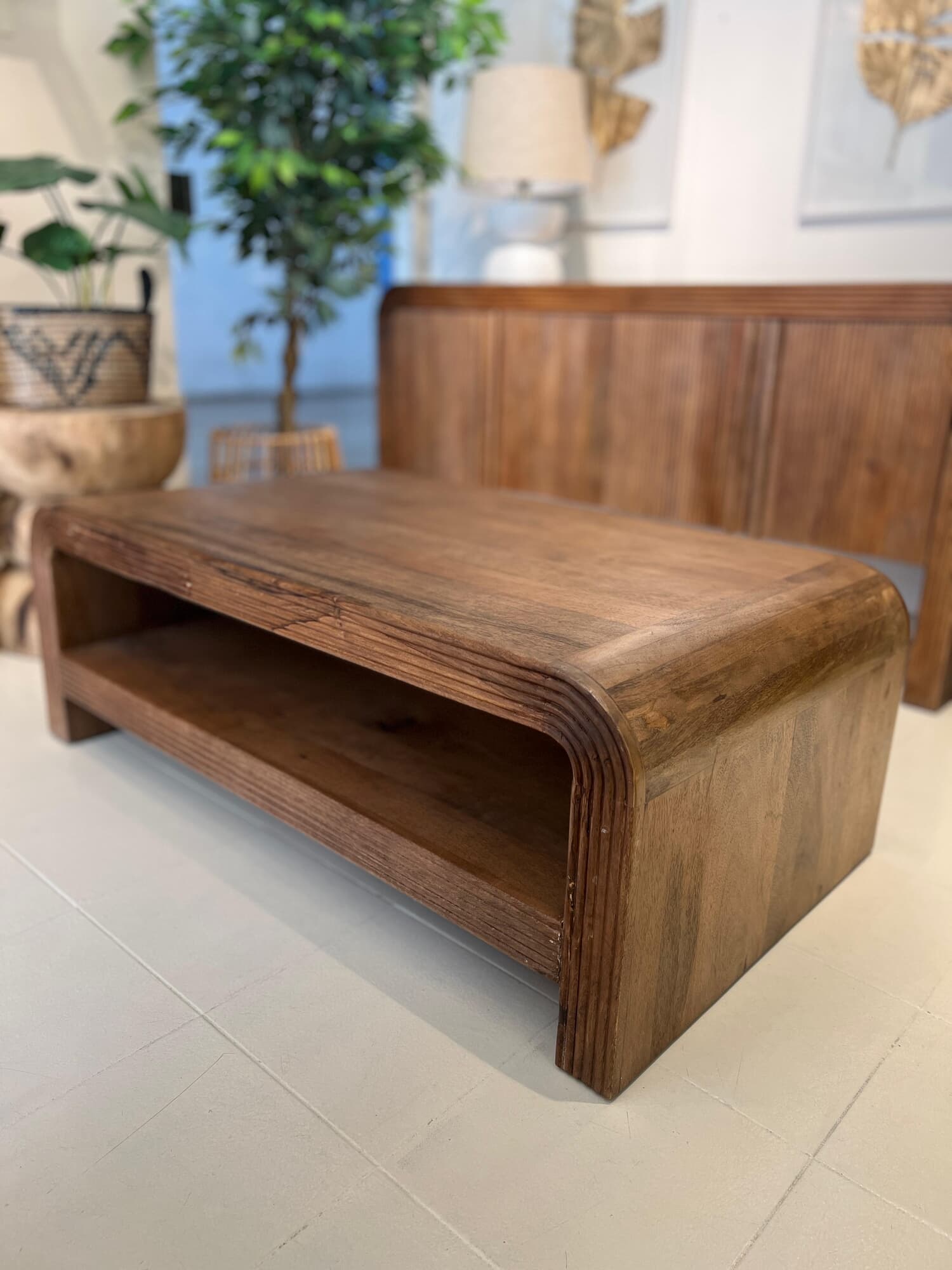 Fabricada en madera maciza de mango con detalles tallados a mano
