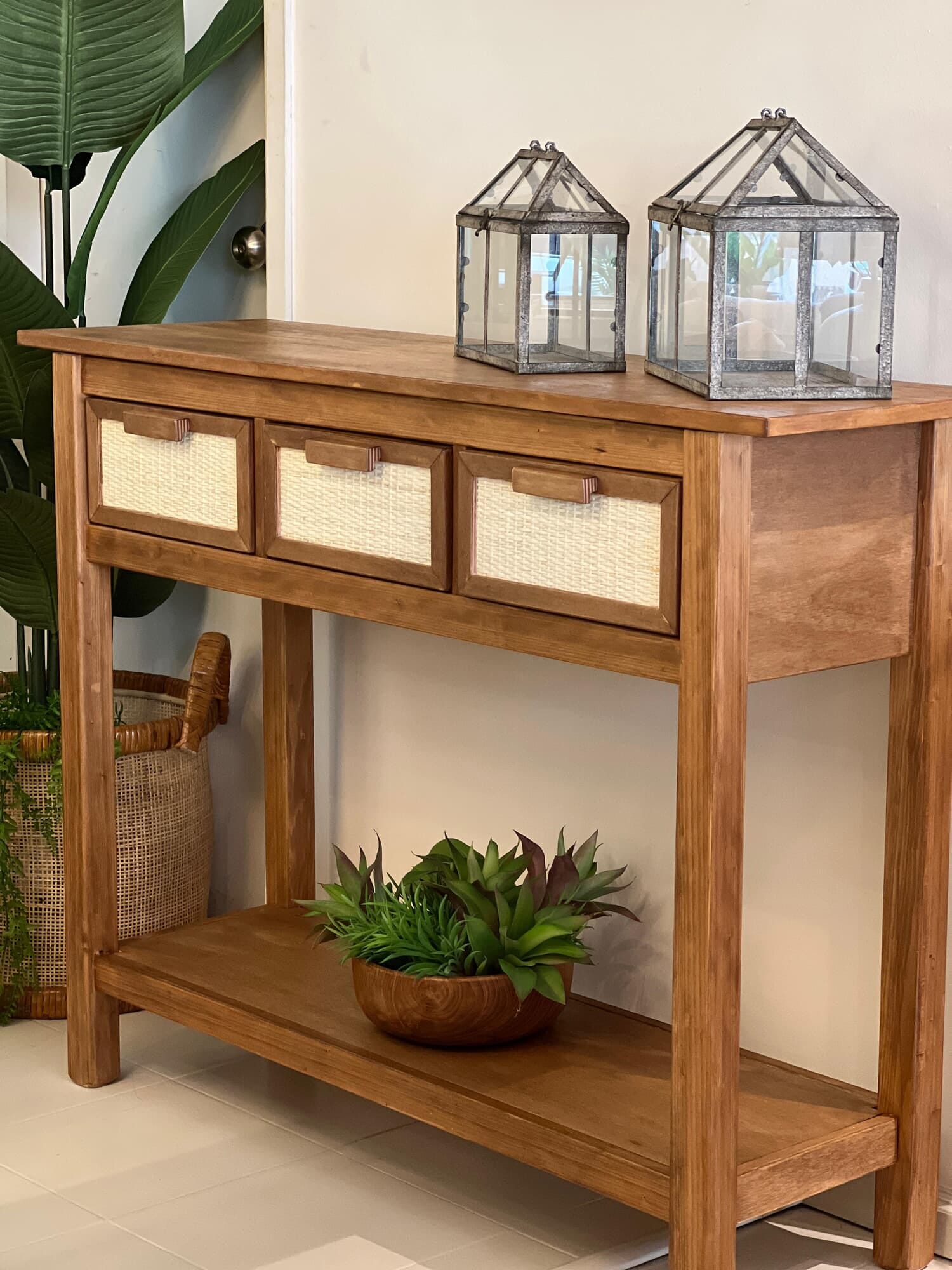 Material: Madera maciza en álamo o eucalipto con detalles en fibra natural en cajones. *Este producto es por encargue. Diseño de esterilla a elección. ·Tiempo de entrega: 20 días hábiles aprox.